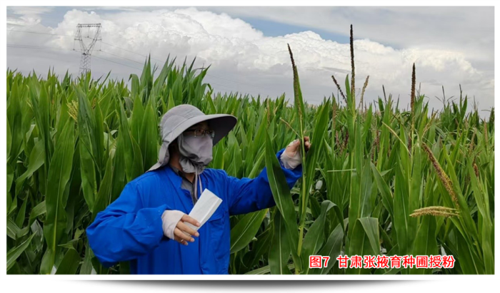 當(dāng)然,我們還會(huì)把這些新加倍DH系在張掖基地種植一份進(jìn)行套袋授粉。套袋授粉是我們每一個(gè)育種人員最熟悉不過的工作了,對于10萬株的授粉任務(wù),我們需要培訓(xùn)更多技術(shù)的工人來幫助我們。在7月將近一個(gè)月的時(shí)間里,每天都在地里跟玉米在一塊,不斷的指導(dǎo)和培訓(xùn)工人授粉,授粉工作看似簡單實(shí)則不易,授粉時(shí)間把控很重要,不易過早也不能太晚,授粉早了結(jié)不滿,授粉晚了沒有花粉了,還有就是授粉授雜的情況。在37℃高溫下,我們頭頂著烈日,揮灑著汗水,看著玉米材料一株株授粉結(jié)束,內(nèi)心還是充滿了無限的喜悅。